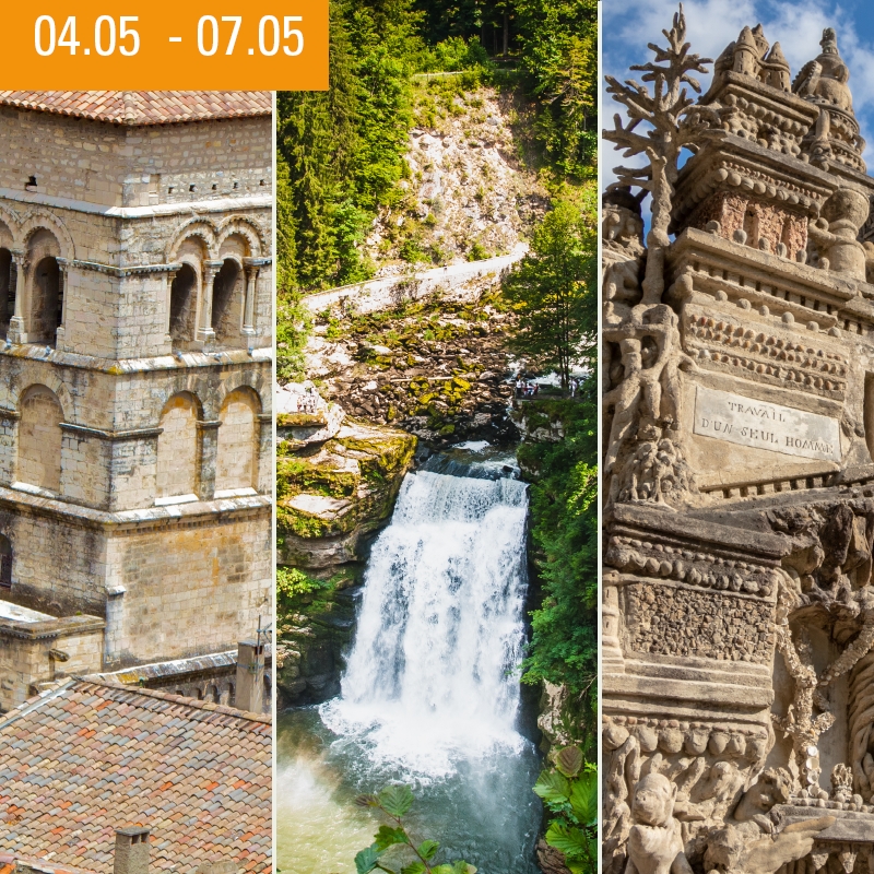 Ce séjour débutera par le Palais du Facteur Cheval, œuvre unique créé par Joseph Ferdinand Cheval, où l’on mesure tout le génie et le travail d’un seul homme. Puis Romans et son musée de la chaussure, approche à bord d’un bateau à roue de la flore, de la faune et du patrimoine architectural des villages de la Sône. Nous poursuivrons avec « le Mastrou », un petit train qui nous transportera dans les gorges du Doux. Ensuite, visite de Cruas et son Abbatiale Sainte-Marie puis nous parcourons le Musée André Auclair, Artiste influencé par les Arts décoratifs et le Surréalisme.